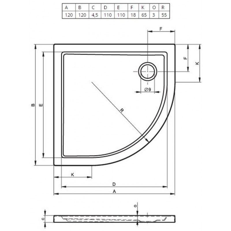 RIHO sprchová vanička SV 288, 120 štvrťkruh DA96