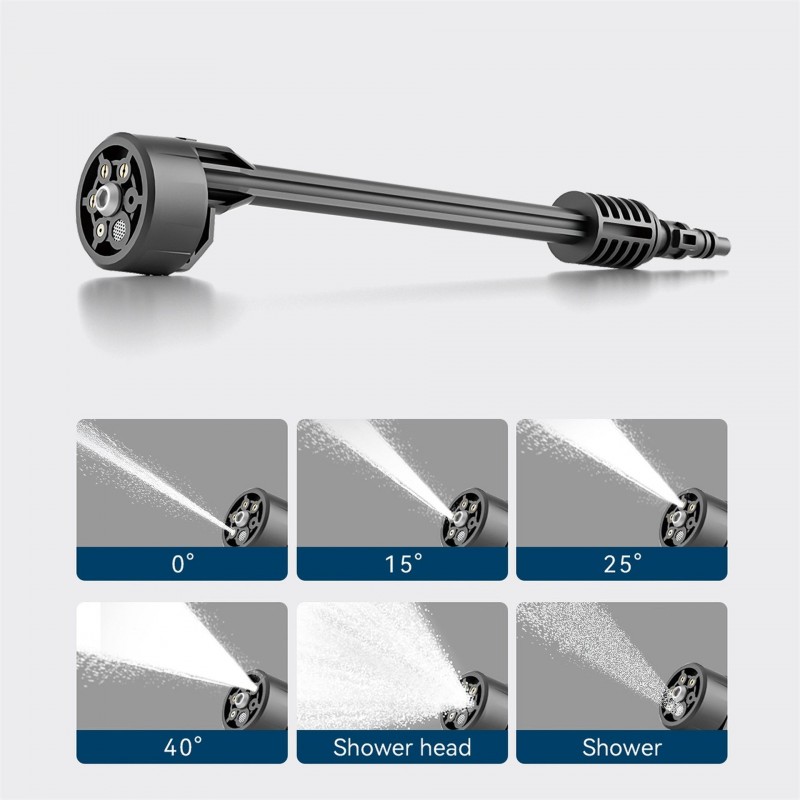 Je vybavená moderným bezuhlíkovým motorom PowerMax, ktorý poskytuje vysoký výkon, tichý chod a bezúdržbový prevádzku. Spolu s výkonnou 20 V lítium-iónovou batériou s inteligentnou ochranou jednotlivých článkov zabezpečuje spoľahlivú prevádzku a dlhú životnosť. Vďaka prehľadnému displeju je možné jednoducho nastaviť tri úrovne tlaku striekacieho prúdu a zároveň sledovať aktuálny stav nabitia batérie. Súčasťou prístroja je aj multifunkčná šesťpolohová tryska – štyri polohy poskytujú vysokotlaký prúd s uhlami 0°, 15°, 25° alebo 40°, ďalšie dve polohy slúžia na oplachovanie alebo polievanie s nízkym tlakom a širokým rozptylom.