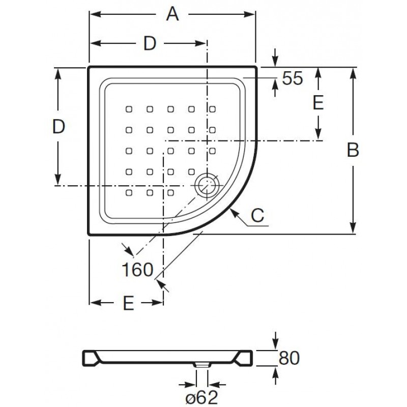 Roca Easy Angular akrylátová sprchová vanička štvrťkruhová 80 x 80 cm, biela 7374794000Rozmery: