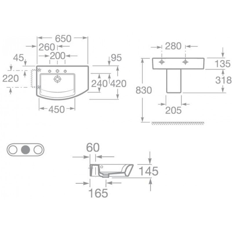 Roca Hall asymetrické umývadlo 65 x 42 cm 7327620000Rozmer výrobku: