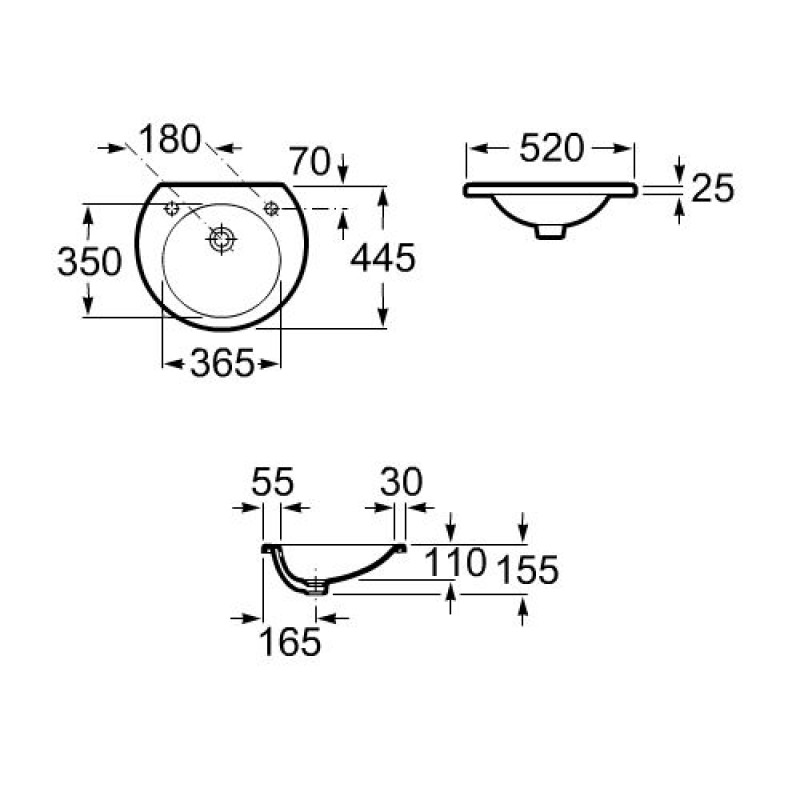 Roca Happening umývadlo zápustné 52x45 cm 7327565000