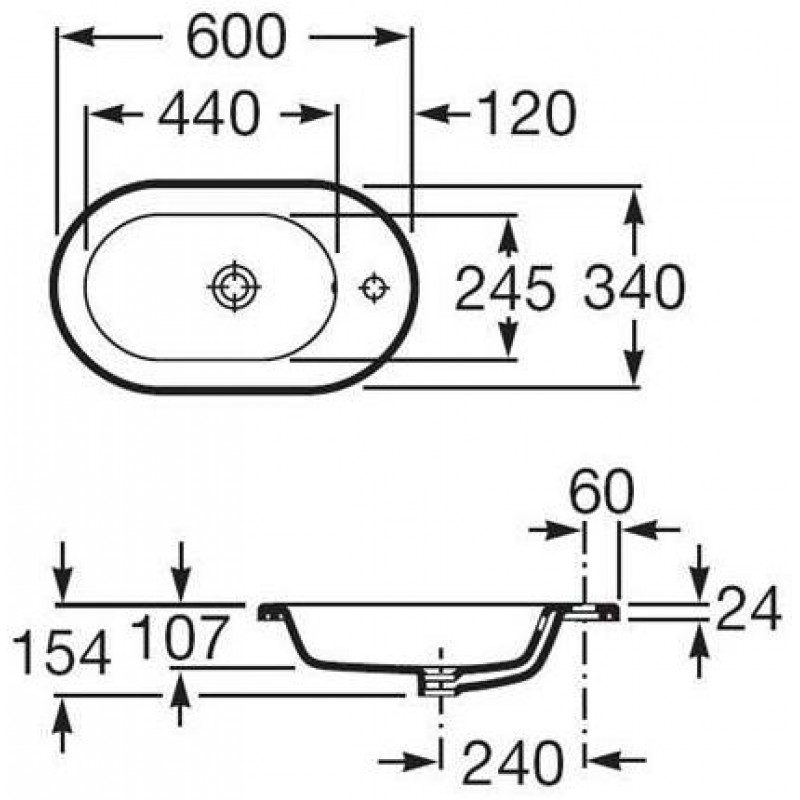 Roca Meridian umývadlo do nábytku 60 x 34 cm, MaxiClean 732724E00MRozmery výrobku: