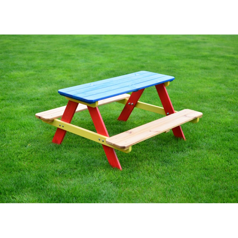 Detská drevená súprava PIKNIK k posedenie či hre pre tých najmenších. Veselé farebné prevedenie. Certifikát FSC zákazníkom zaručuje kvalitu použitého materiálu.