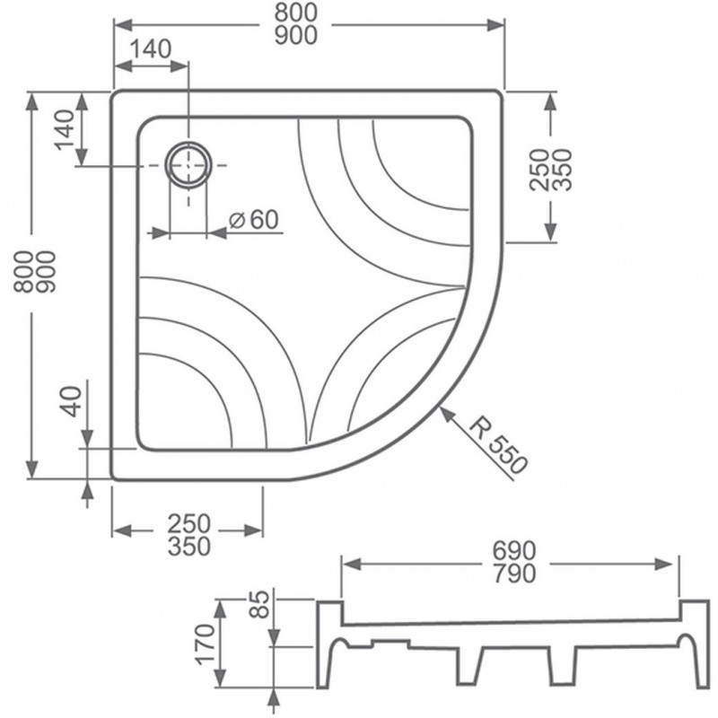 ROLTECHNIK Štvrťkruhová sprchová vanička HAWAII-P/800 8000024