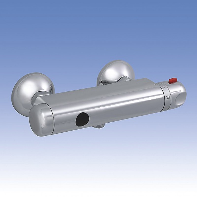SLS 03SB - obj č 22031 - nástenné ovládanie sprchy pre pripojenie k sprchovému setu s elektronikou (reakcia na osobu), termostatickým a elektromagnetickým ventilom, etážky (2 ks), chrómovaná krytka (2ks), sitká, imbusový kľúč, bez sprchového setu , lithiová napájacia batéria SLA 09