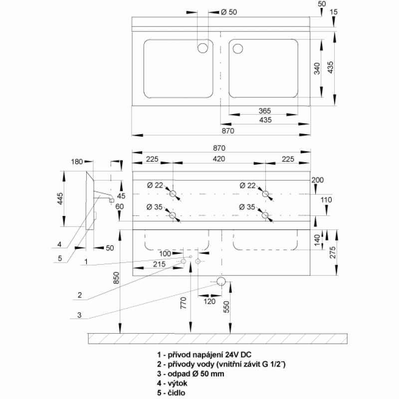 SANELA Nerezový dvojdrez SLUN 07ET zadná stena, integr. senzor, termostatický ventil 93073- Drez so zadnou stenou a zabudovanou elektronikou