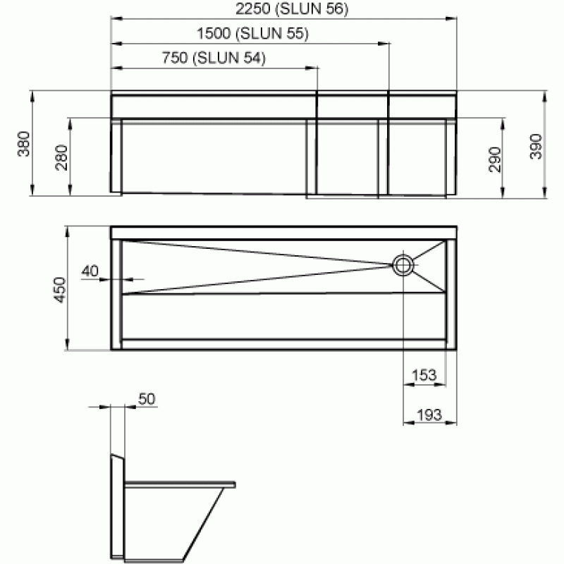 - SLUN 54 - 750 mm, SLUN 55 - 150 mm, SLUN 56 - 2250 mm