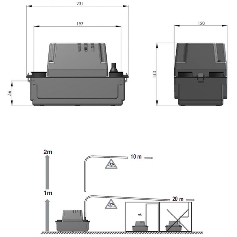 SANIBROY SANICONDENS MINI čerpadlo pre kondenzát z kotla, chladenieSANICONDENS MINI je malé prečerpávacie zariadenie pre kondenzačnej vody napr. Z kotla v situáciách, keď sú minimálne požiadavky na čerpacej výšku a objem prečerpávanej kondenzačnej vody.