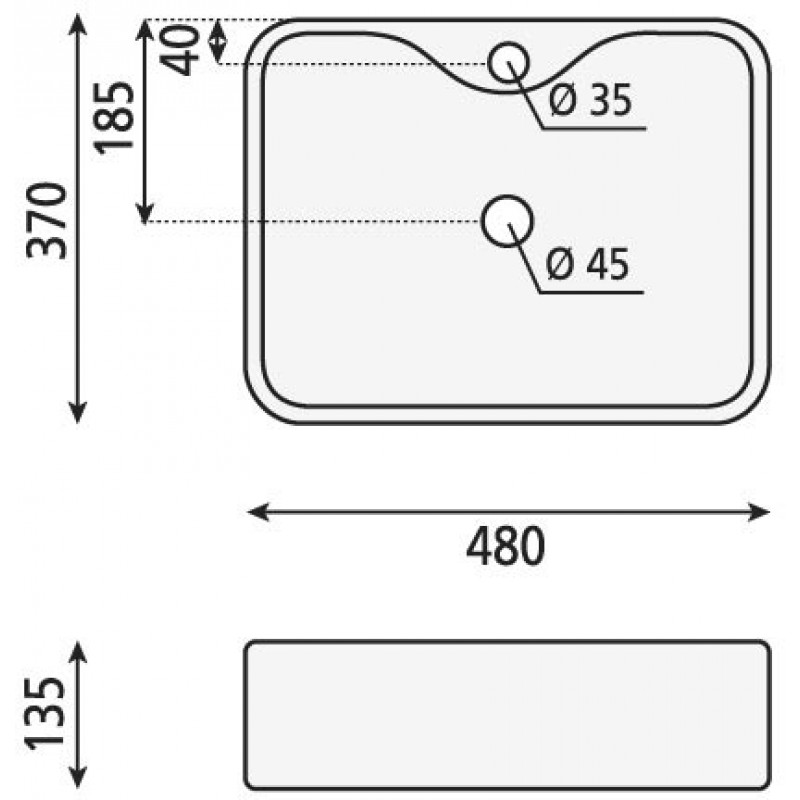 SAPHO BALENA keramické umývadlo 48x13, 5x37 cm, na doskuUmývadlá na dosku