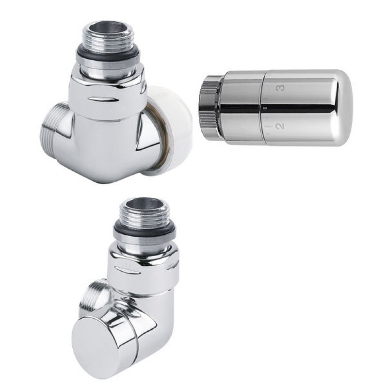 Dizajnová sada Triaxiálne ventilov s termostatickou hlavicou je vhodná pre pripojenie vykurovacích telies s vnútorným závitom G1 / 2 ". Ventily sú osadené tesniacimi O-krúžkami pre spoľahlivú a rýchlu montáž. Sada nie je vhodná pre kombináciu s elektrickým vykurovacím telesom.