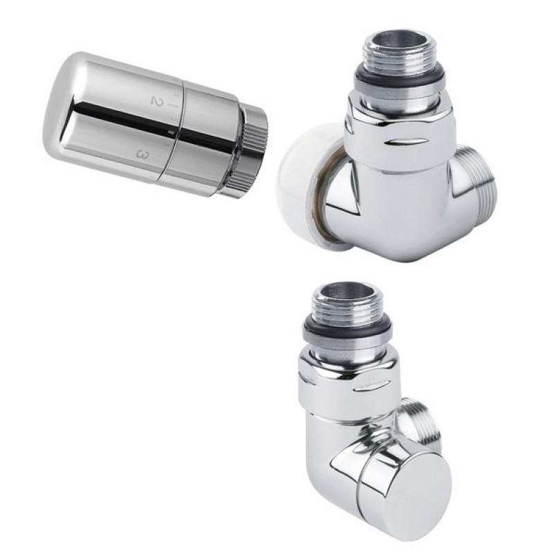Dizajnová sada trojosový ventilov s termostatickou hlavicou JE vhodná pre pripojenie vykurovacích telies s vnútorným závitom G1 / 2 ". Ventily SÚ osadené tesniacimi O-krúžkami pre spoľahlivú rýchlu montáž. Sada Nie je vhodná pre kombináciu s elektrickým vykurovacím telesom.