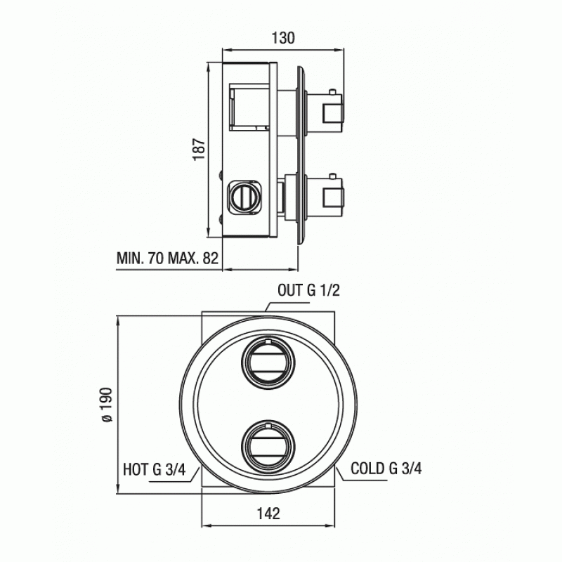 Termostatické batérie série Elis zachovávajú čistotu elegantných línií bez kontrastov a stále majú priaznivú cenu. Podomietková sprchová termostatická batéria pre jeden výstup má bezpečnostnú poistku SECUREstop a systém úspory vody ECOstop.