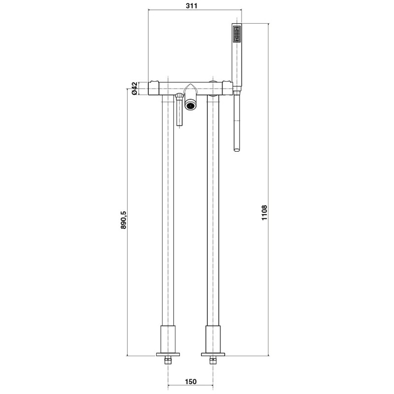Vaňová termostatická batéria s pripojením do podlahy obsahuje: