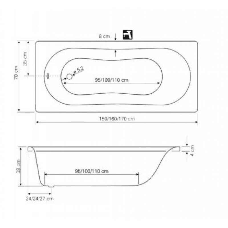 Obdĺžniková plastová vaňa JIZERA patrí ku kúpeľňové klasice.Vyrábí sa v rozmerových variantoch 120 - 60l, 150 - 90l, 160 - 100l, 170 - 110l, 180 x 70 cm - 120L, v bielej barvě.Výborně sa uplatní pri rekonštrukciách bytových jadier, kde môže bez problémov nahradiť existujúce oceľovou smaltovanou vaňu zodpovedajúcej dĺžky.