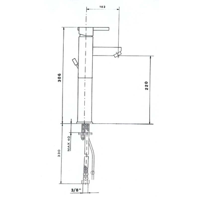 Dĺžka hubica: 103 mm (od stredu tela batérie k stredu perlátora).
