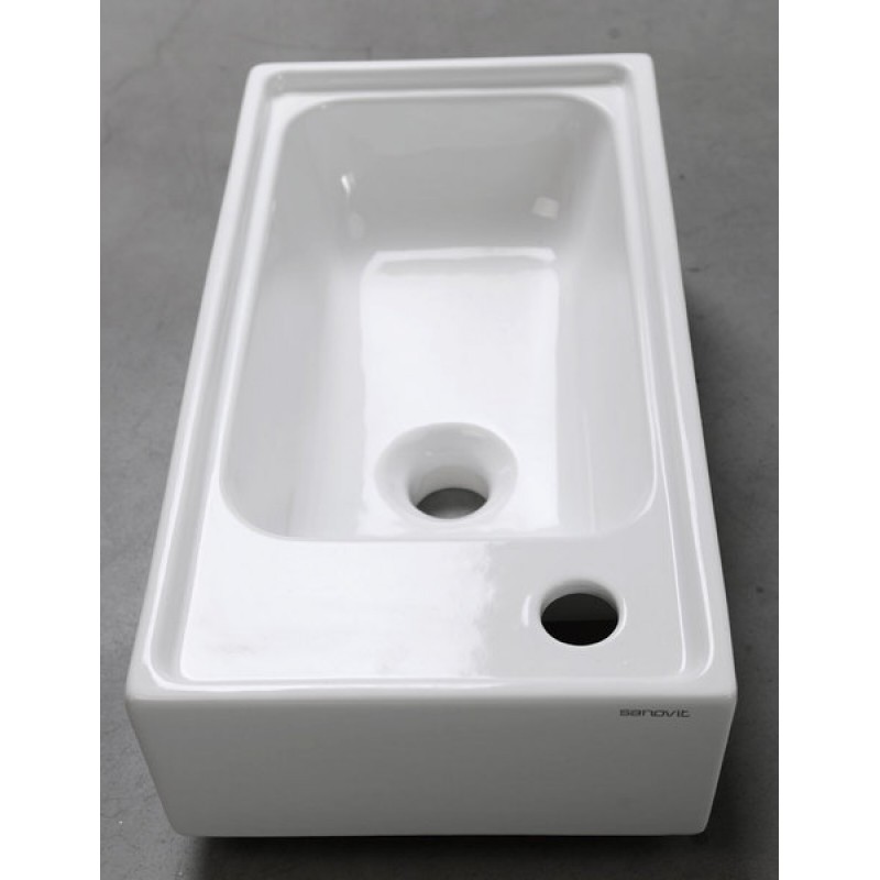 Hranaté keramické umývadielko je svojimi rozmermi je predurčené do malých kúpeľní alebo na samostatnú toaletu.Pri výbere batérie zvážte veľkosť umývadielka.