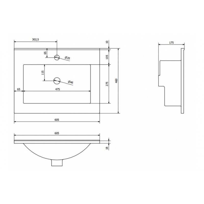 Umývadlo je určené pre nábytok alebo k zapusteniu do dosky, nemožno inštalovať na stenu samostatne.
