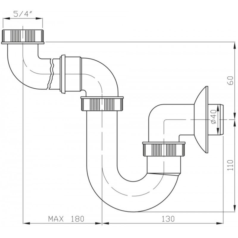 SAPHO Umývadlový sifón šetriace miesto nízky, 1 "1/4, odpad 40 mm, biela 151.128.0
