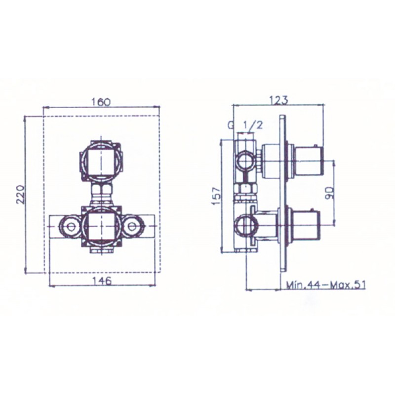 UNA Podomietková sprchová termostatická batéria, pre dva výstupy- s bezpečnostnou poistkou SECUREstop