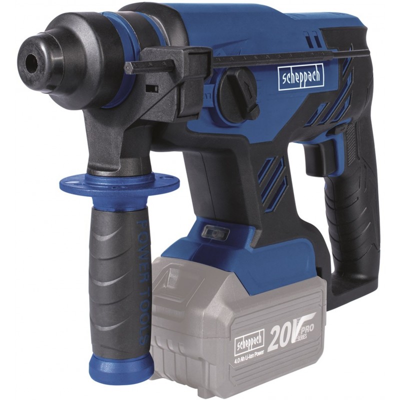 Základnou výhodou stroja je silný bezuhlíkový motor, ktorý má oproti bežným uhlíkovým výrazne viac výkonu, nižšie trenie, je takmer bezúdržbový a má výrazne dlhšiu životnosť. Aj vďaka tomu kladivo disponuje širokým rozsahom otáčok s maximom 1400 ot / min. a silou úderu 1,7 J. Stroj disponuje štyrmi funkciami: vŕtanie (pre vŕtanie do dreva, plastu alebo kovu), vŕtanie s príklepom (pre vŕtanie do betónu, tehál alebo muriva), sekanie (odstraňovanie dlaždíc, čistenie plôch od náliatkov, sekanie vedenie pre káble a pod.) a sekanie s uzamknutím sekáča v požadovanej polohe. Uchytenie SDS Plus zaisťuje jednoduchú a rýchlu výmenu nástroja bez použitia náradia. Stroj sa dodáva s prídavnou polohovateľnou rukoväťou a hĺbkovým dorazom. Stroj je možné používať s batériami Scheppach 1,5 / 2/4 Ah. Stroj sa dodáva bez batérie a nabíjačky.