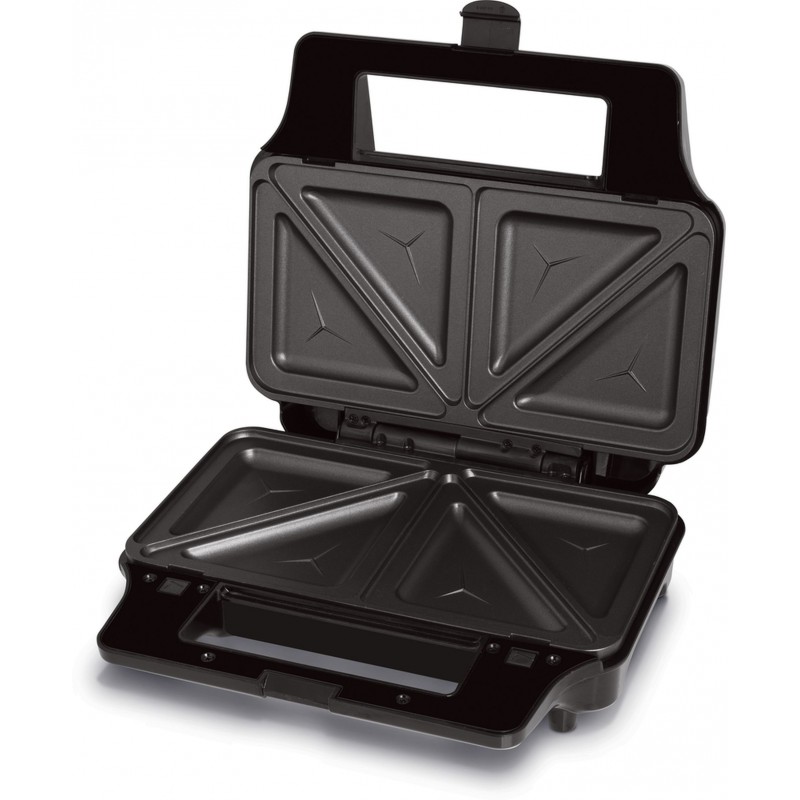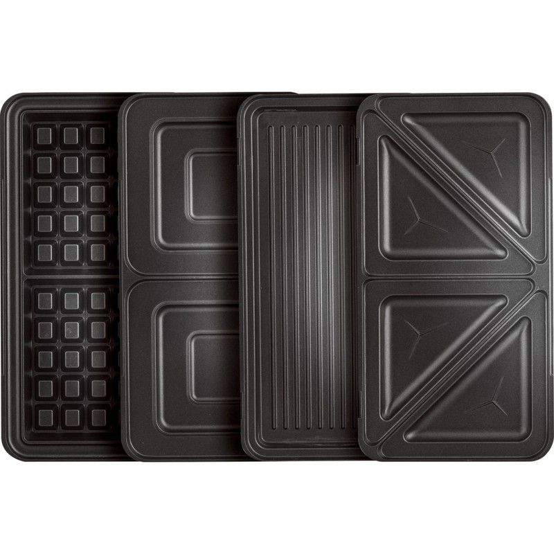 • 4 výmenné dosky na pečenie 285 x 152mm (trojuholníkový tvar sendviča, panini, 2 extra hlboké pre vafle a sendviče)