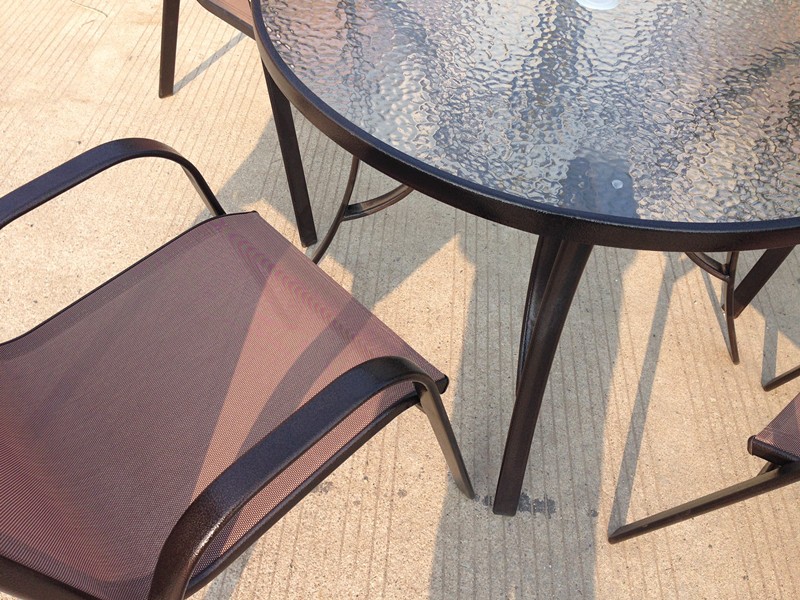 SHARKS SET záhradného nábytku Jasiňa - Bronz Design SA011Záhradný nábytok Jasiňa sa vyznačuje ľúbivým prevedením konštrukcie v Bronz Designu, jedinečnosť setu dáva materiál plochy stola z tvrdeného skla.