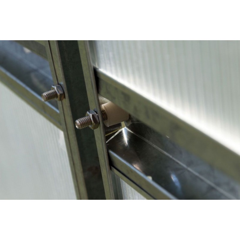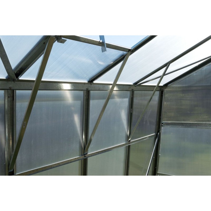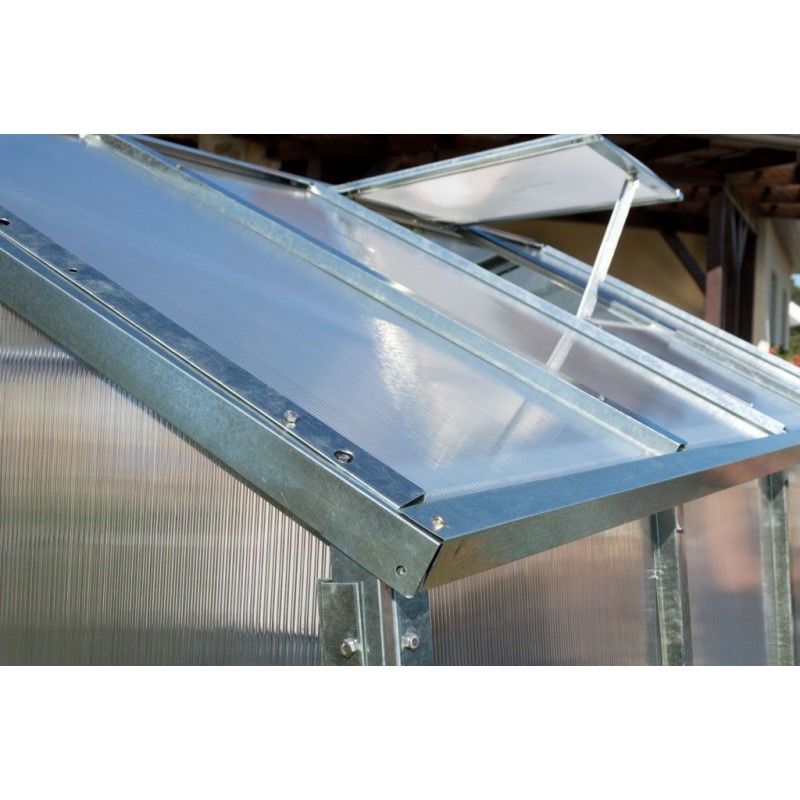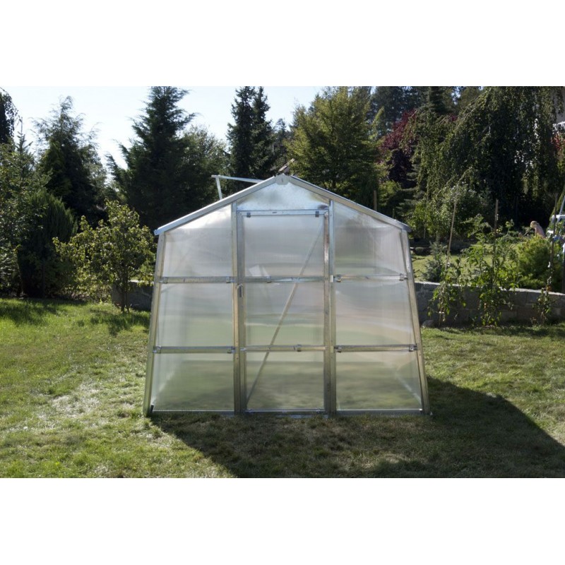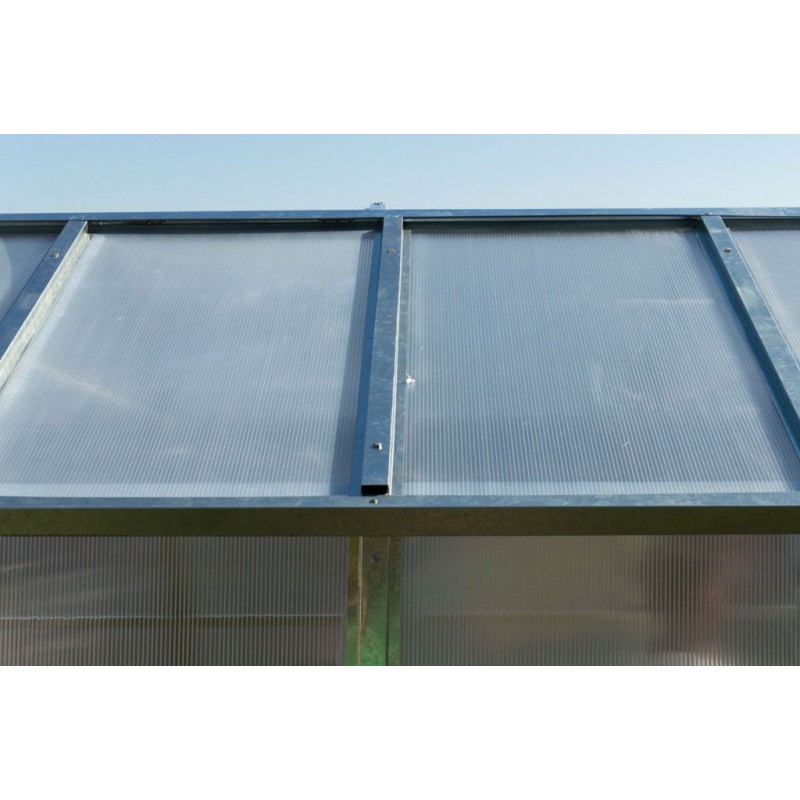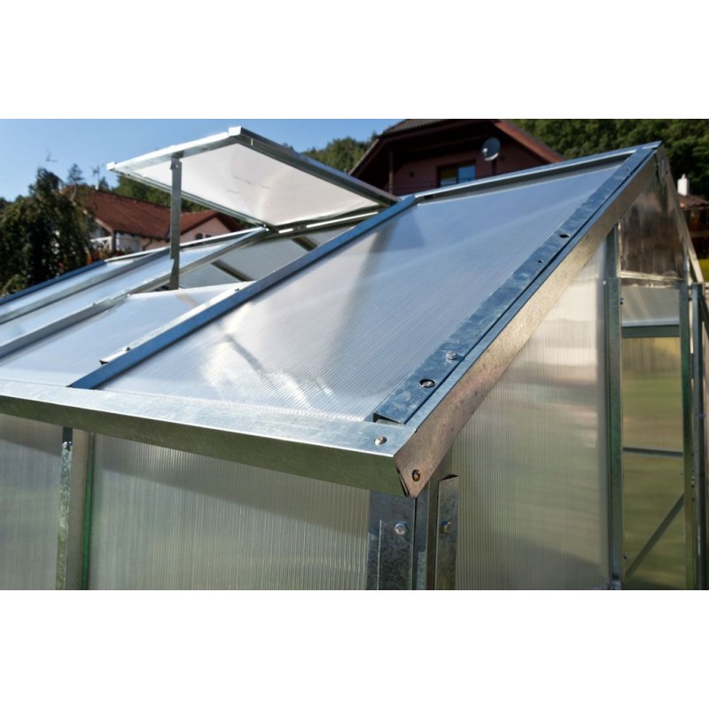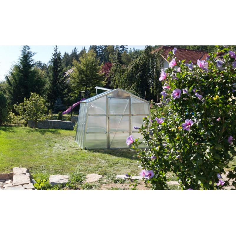 Záhradný skleník má novú konštrukciu z kvalitných pozinkovaných profilov a presklenia skleníku zaisťuje výplň z dutinkového polykarbonátu s hrúbkou 4 mm, ktorý má po jednej strane UV fóliu, vďaka ktorej polykarbonát nežltne a nekrehne.