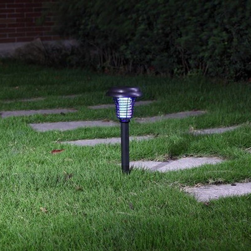Venkovní lampa s vestavěnou baterií, která je nabíjena slunečním světlem. Světlo přitahuje a zároveň hubí komáry a další malý létající hmyz. Zároveň lampa slouží i jako dekorace a osvětlení Vaší zahrady.Nejsou použity žádné chemikálie = žádné škodlivé účinky. Snadná instalace – stačí pouze zapíchnout do země, žádné zapojovaní ani tahání kabelů.