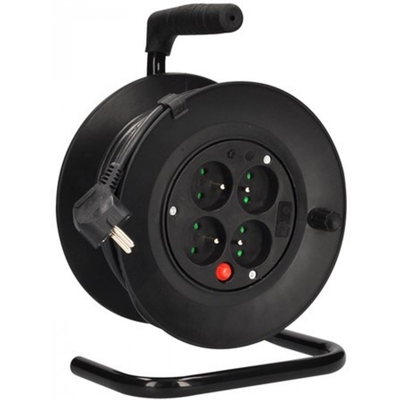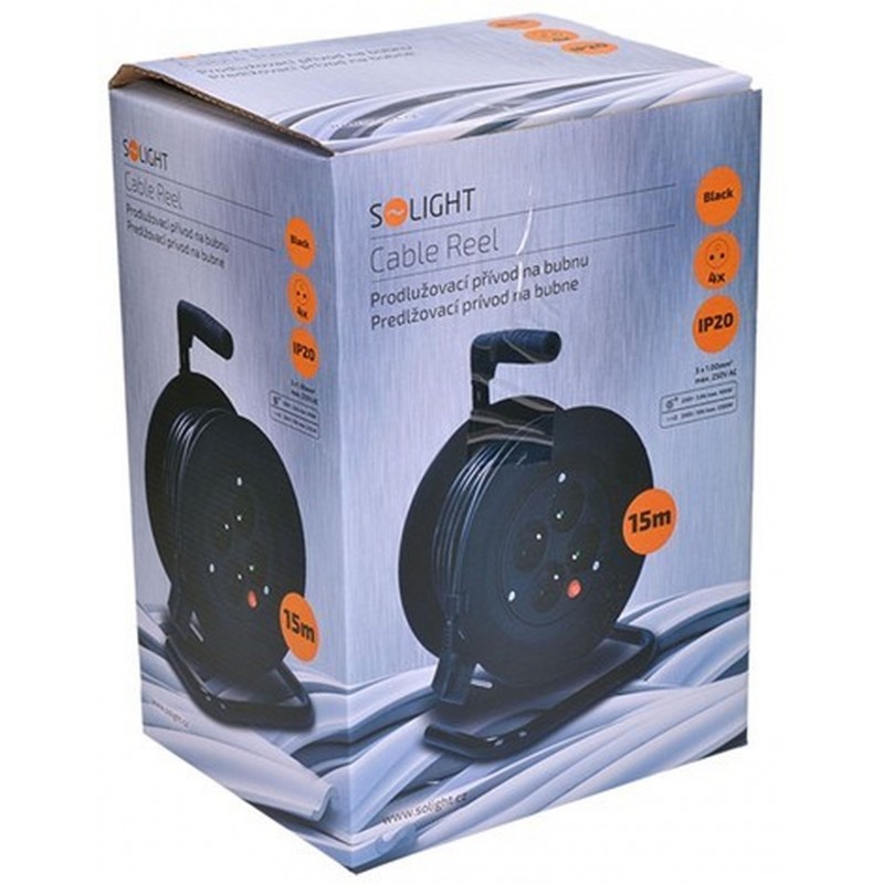 SOLIGHT Predlžovací prívod na bubne, 4 zásuvky, čierny kábel 3x 1,0mm2, 15m PB22