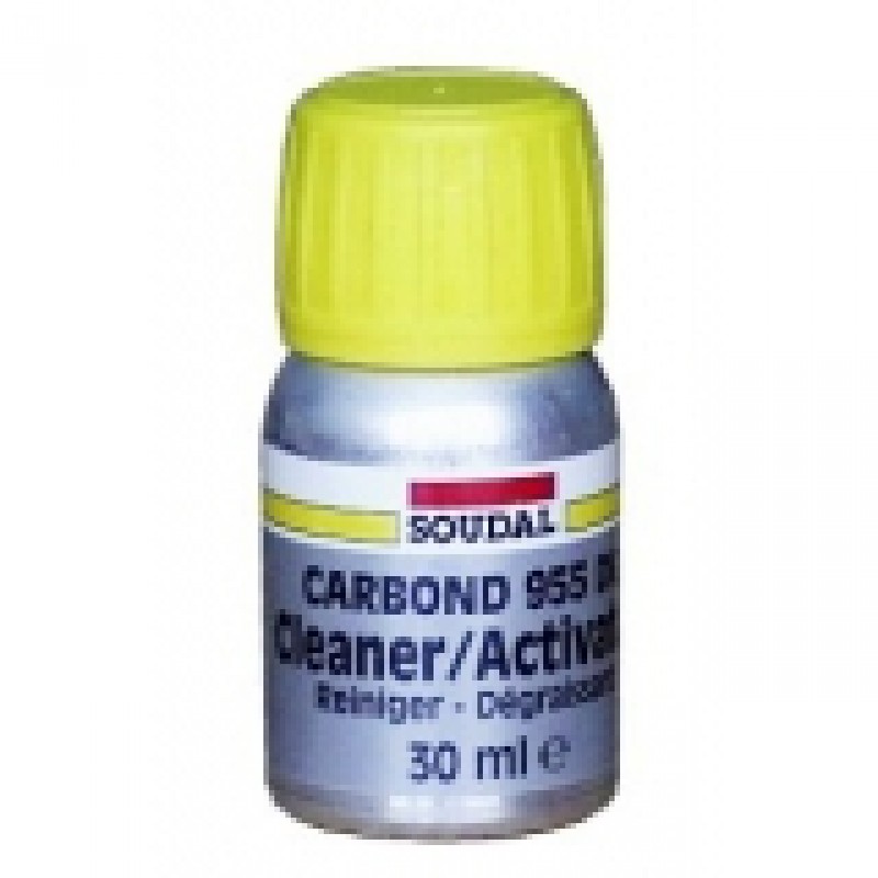 SOUDAL Carbond 955 DG activator vysokopevnostné rýchloschnúce lepidlo 30 mlCarbond 955DG je špeciálny vysokopevnostná rýchloschnúce lepidlo na lepenie čelných skiel automobilov do karosérií, alebo priame konštrukčné lepenie kovových dielov. S automobilom je možné manipulovať 1hod. po aplikácii, po 2hod. môže do bežnej prevádzky. Veľmi dobre priľne k väčšine nesavých podkladov, vytvára trvale pružný a veľmi pevný spoj, vode odolný a pretierateľný rôznymi typmi náterov. Carbond 955DG sada obsahuje: 1ks 310ml lepidlá, 1ks 30ml Primer, 1ks 30ml Cleaner / Activator, špeciálne aplikačné špičku a štetec na nanesenie primeru. Carbond 955 Primer: podkladový náter pre zvýšenie priľnavosti tmelu a ochranu spoja proti pôsobeniu UV žiarenia. Carbond 955 Cleaner / Activator: pre očistenie povrchu karosérie a zvýšenie priľnavosti tmelu k povrchu.