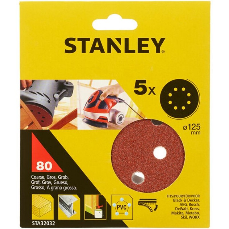 Stanley STA32032-XJ Brúsne papiere pre excentrickú brúsku 125mm, P80, 5ks