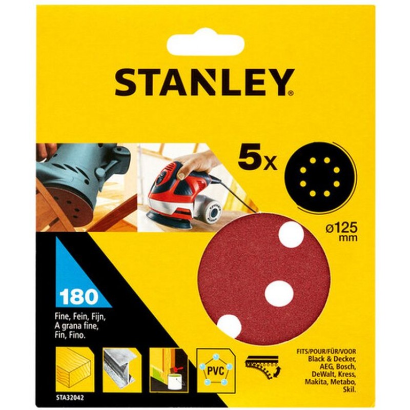 Stanley STA32042-XJ Brúsne papiere pre excentrickú brúsku 125mm, P180, 5ks
