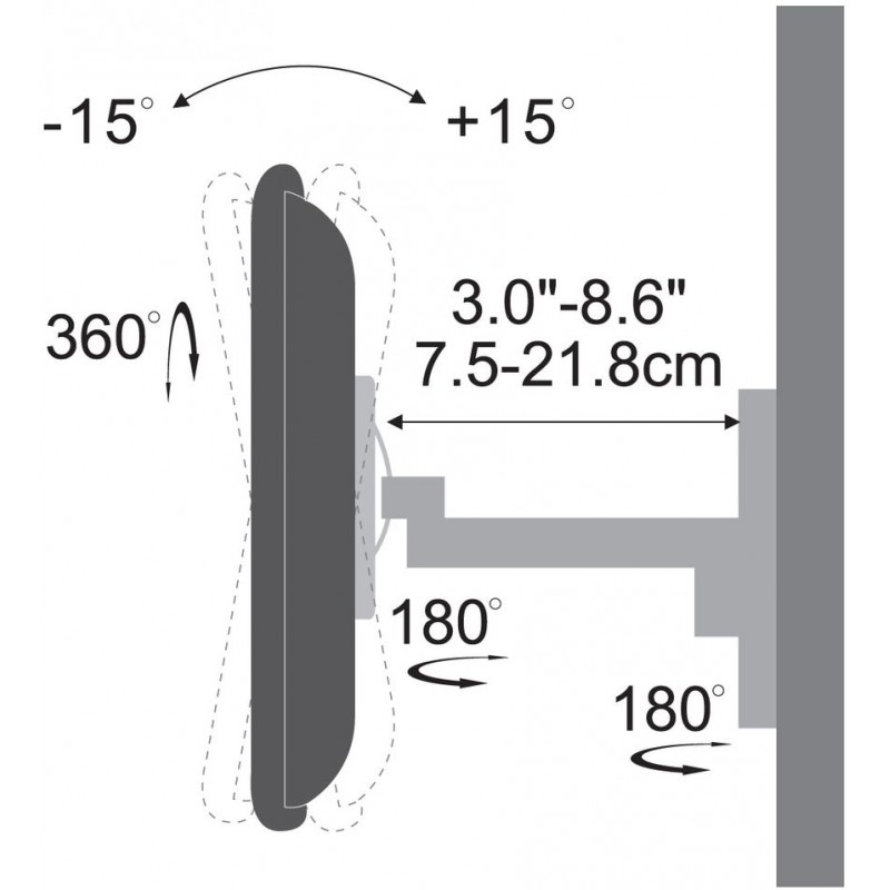 Max. vzdialenosť od steny: 21,8 cm
