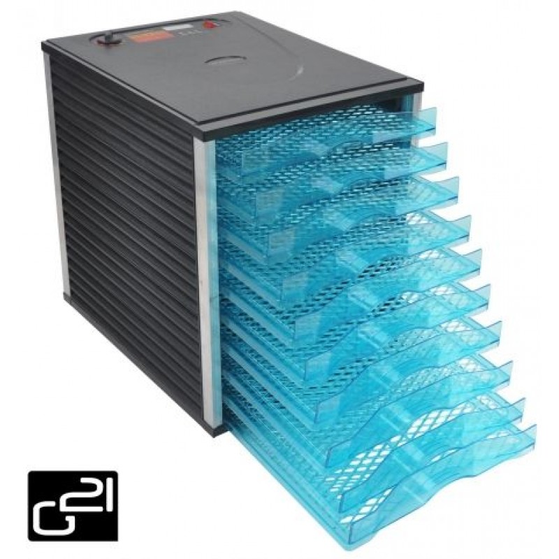 Sušička ovocia G21 Harmony big s časovačom 6008116Sušenie potravín je jednou z najstarších metód uchovávania potravín. Pomocou sušičky G21 Harmony big možno sušiť najrôznejšie druhy potravín od húb, kvetov, ovocia a zeleniny, byliniek až po ovocné rolky a obilniny. Rastlinné potraviny ale zďaleka nie sú všetko, čo pomocou sušičky môžete dehydrovať. Je možné si usušiť namarinované prúžky mäsa alebo ak jerky, ktoré sú výdatnou pochúťkou na rôzne výlety, kempovanie alebo len tak na chuť. Potraviny v sušičke potravín absorbujú teplo a následne uvoľňujú vlhkosť v podobe vodnej pary. Počas sušenia je veľmi dôležité zvoliť vhodnú teplotu a sušené potraviny priebežne kontrolovať, aby sme v potravinách uchovali všetky dôležité enzýmy. Vystaví Ak sa potraviny príliš vysokým teplotám, enzýmy sa z nich vytrácajú alebo naopak pri nízkych teplotách môžu potraviny začať podliehať skaze.