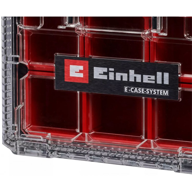 Triediaci box Einhell E-Case Half-size je súčasťou modulárneho úložného systému E-Case a slúži na prehľadné uloženie skrutiek, hmoždiniek a ďalších drobných dielov. Organizér je kompatibilný so všetkými kuframi Einhell E-Case so zámkom Half-size a so všetkými kuframi Half-size E-Cases. Pre kompatibilitu so štandardnými kuframi E-Case je potrebná adaptérna doska E-Case.