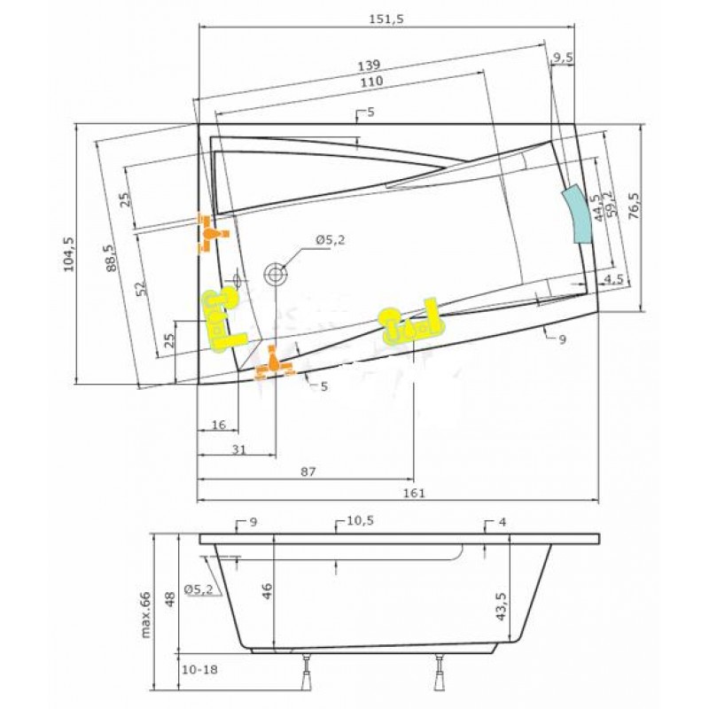 TEIKO Vaňa Ara P rohová 160x105 cm, akrylátová, biela, pravá V110160R04T06001Rozmery: 160 x 105 x 46 cm