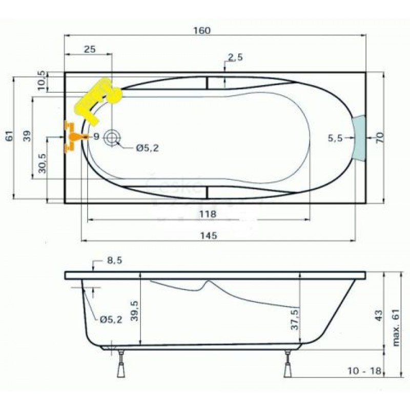 TEIKO Vaňa Asuán obdĺžniková 160 x 70 cm, akrylátová, biela V112160N04T03001Rozmery: 160 x 70 x 39 cm