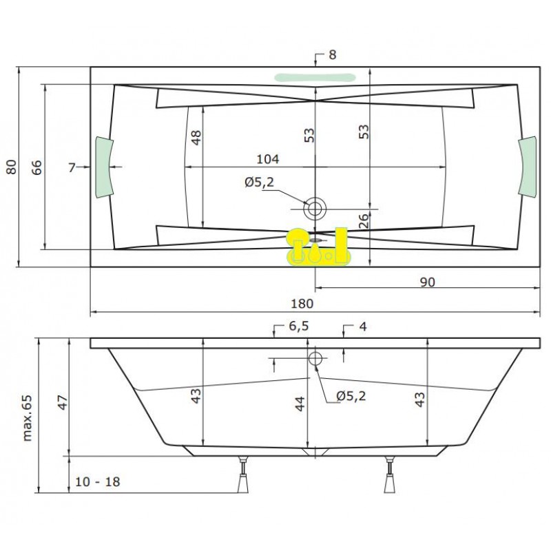 TEIKO Vaňa Columba obdĺžniková 180 x 80 cm - HTP systém ECO HYDRO V212180N04T03211Rozmery: 180 x 80 x 45 cm
