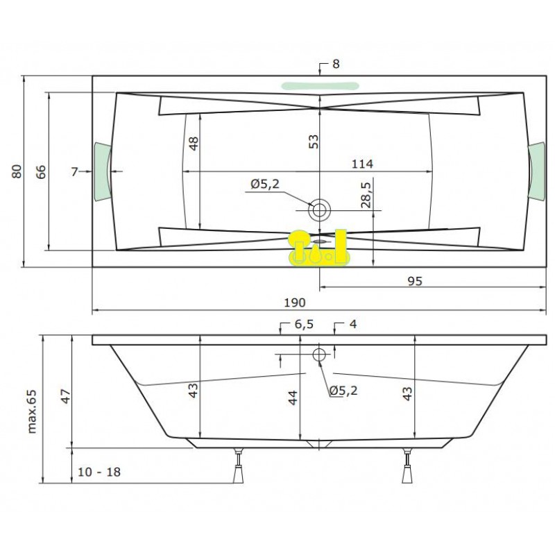 - 2 ks minitrysek (u obdĺžnikových van montované do nôh, u rohových vaní do chrbta - podľa možností montážnych plôch, buď do chrbta alebo do nôh)