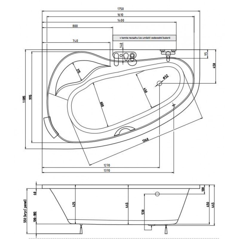 TEIKO Vaňa Dorado 175 L rohová 175x110 cm, akrylátová, biela, ľavá V110175L04T02001Rozmer: 175 x 110 x 44 cm