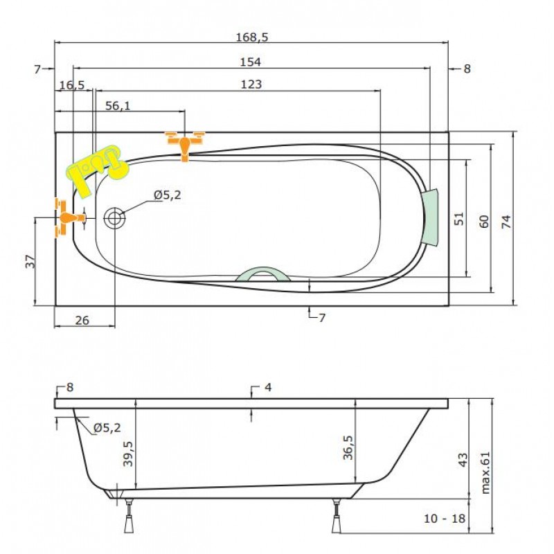 TEIKO Vaňa Elba obdĺžniková 170 x 75 cm - HTP systém ECO HYDRO V212170N04T03211Rozmery: 170 x 75 x 39,5 cm