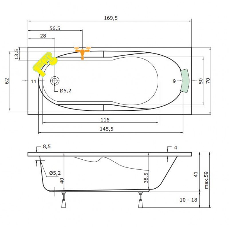 TEIKO Vaňa Ibiza obdĺžniková 170 x 70 cm - HTP systém ECO HYDRO V212170N04T01211Rozmery: 170 x 70 x 39 cm
