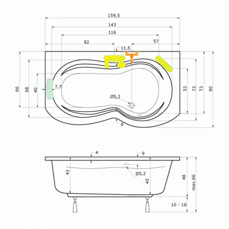 U systémov HYDRO je osadenie tryskami nasledujúce: 5 mikrotrysiek, 4 maxitrysky. U systému HYDROAIR je osadenie tryskami nasledujúce: 5 mikrotrysiek, 4 maxitrysky a 12 airtrysek. Netýka sa systémov ECO. Vaňové zásteny je možné inštalovať pri vani osadených masážnym systémom po špecifikácii umiestnenia ovládača. Javu ponúkame s krycím panelom.