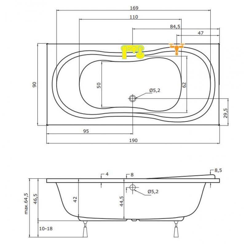 - 2ks minitrysek (u obdĺžnikových van montované do nôh, u rohových vaní do chrbta - podľa možností montážnych plôch, buď do chrbta alebo do nôh)