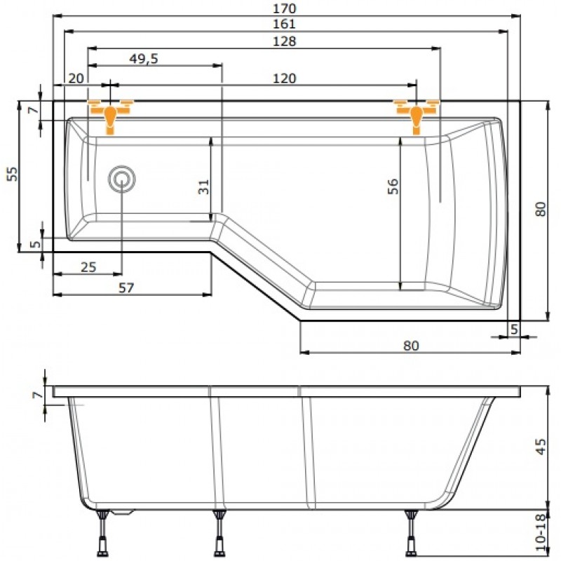 TEIKO Vaňa Tuba rohová 170 x 80 cm, akrylátová, ľavá, biela V117170L04T01001Rozmer: 170 x 80 x 45 cm