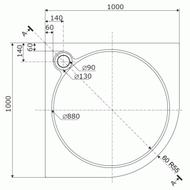 Štvrťkruhová sprchová vanička VESTA sa vyrába v troch rozmeroch v prevedení s hladkým povrchom.