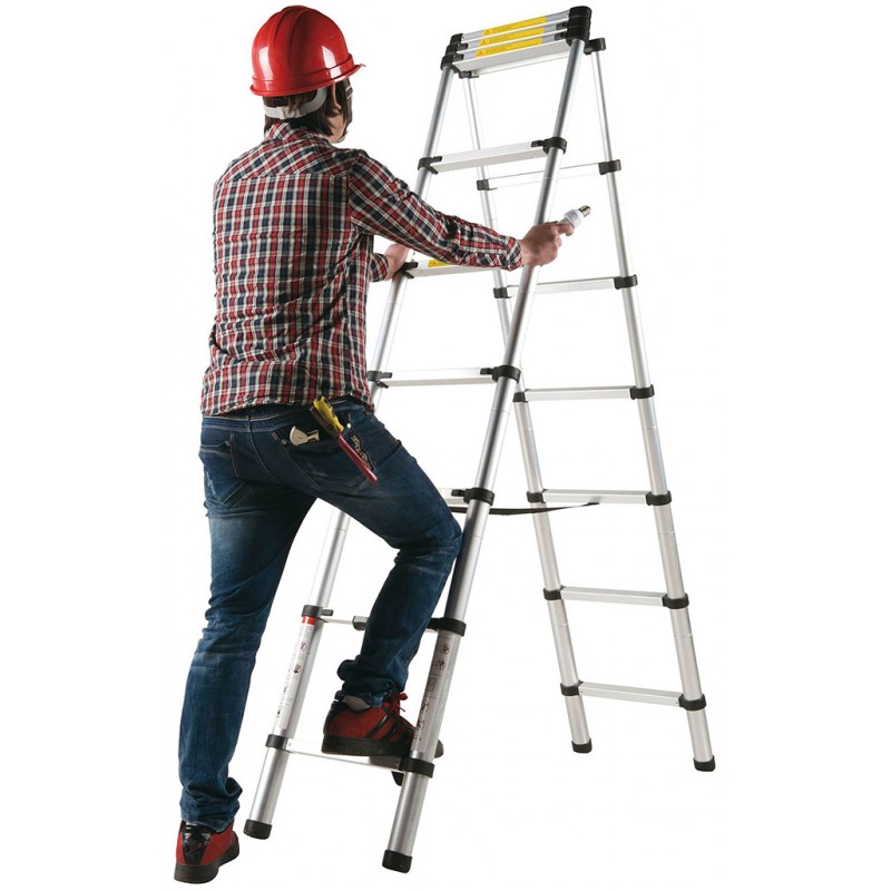 ZNAČKOVÉ HLINÍKOVÉ TELESKOPICKÉ štafle G21 GA-TZ9 +11-3,2 M. Špičkový model pôvodne vyvinutý pre profesionálov sa vyznačuje dostatočne tuhou konštrukciou, použitím ľahkých hliníkových materiálov znižuje celkovú hmotnosť a zároveň unikátna konštrukcia zabezpečuje zloženie rebríka do minimálnej možnej úložnej veľkosti. Tieto vlastnosti predurčujú tieto štafle nielen pre profesionálne použitie, ale nájdu veľmi ľahko použitie v dielni, domácnosti či na záhrade, kde používatelia oceňujú všetky jeho špičkové úžitkové vlastnosti. Špeciálne možnosť uloženia štaflí v zloženom stave ocenia všetci, čo vo svojej dielni či domácnosti bojujú s nedostatkom priestoru, alebo sa potrebujú s rebríkom presúvať na vzdialené miesta a musí riešiť problémy s dopravou štaflí v autách či iných dopravných prostriedkoch. Všetky konštrukčné prvky, stupnica, poistné zámky sú vykonané podľa ergonomických zásad a podporujú a ich jednoduché a intuitívne používanie.Veľmi obľúbené ľahké a skladacie hliníkové teleskopické rebrík!