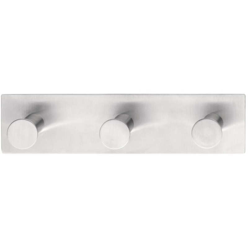 TESA Powerbutton háčik CLASSIC trojháčik, matná nerez oceľ, obdĺžnikový, nosnosť 12kg 59334-00000-00Kovový tesa® Powerbutton trojháčik Classic kombinuje tri háčiky na dekoratívne lište z brúsenej nerezovej ocele. Je navrhnutý pre zavesenie ťažších vecí, ako sú napríklad župany alebo kabáty, a to až do celkovej váhy 12 kg. Vďaka patentovanej technológii tesa® Powerbutton tento klasický trojháčik ľahko pripevníte bez vŕtania alebo použitia náradia. Použitie špeciálneho lepidla poskytuje odolnosť spoja voči vode a teplu na väčšine pevných podkladov *. Zvlášť na obkladoch môže byť háčik ľahko odstránený bez zanechania stôp a znovu použitý na inom mieste.