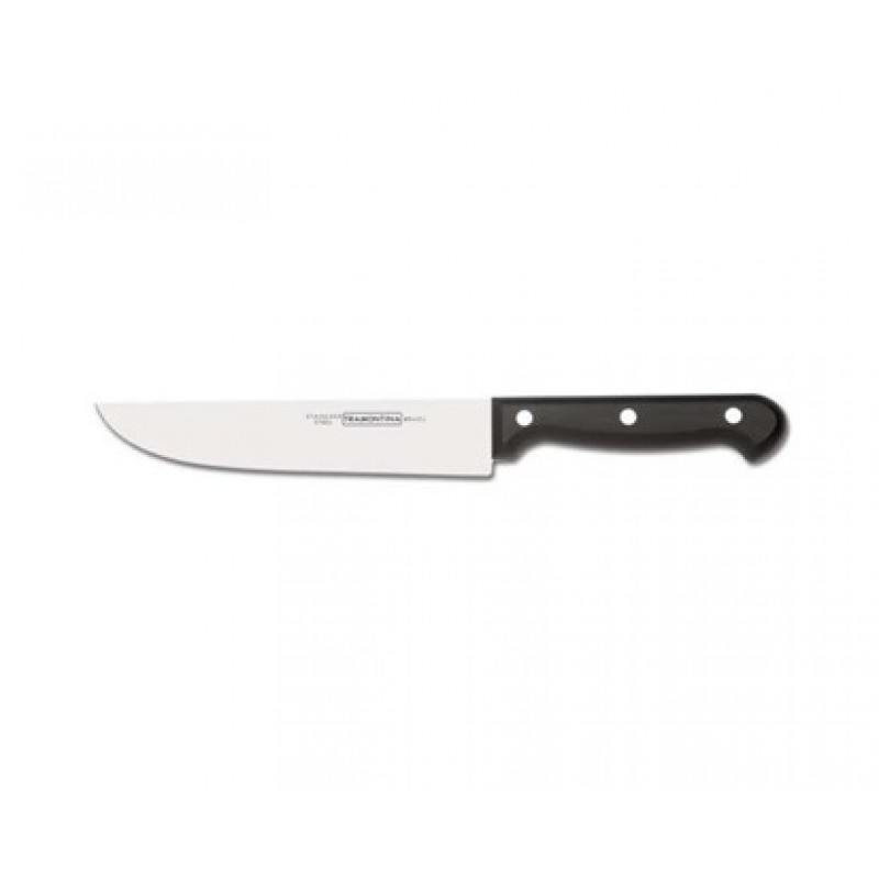 TRAMONTINA 17,5 cm kuchynský nôž ULTRACORTE III 3023857107Nôž kuchynský Ultracorte, 18cm, čepeľ vyrobená z kvalitnej nehrdzavejúcej ocele, tvarovaná a brúsená pre dokonalý účinok pri použití, ergonomická rukoväť z vysoko odolného plastu s oceľovými nitmi, vhodné do umývačky, balené po 1 ks v plastovom obale.