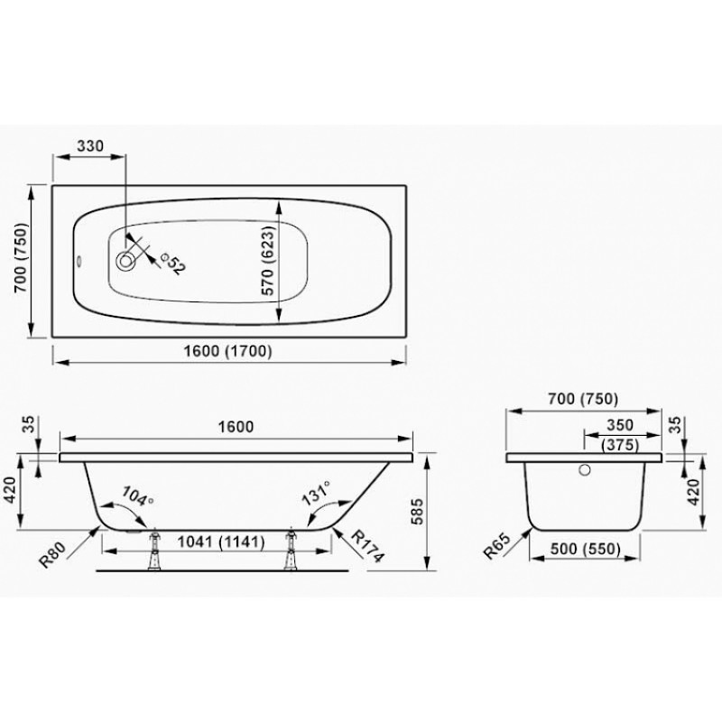Vagnerplast MILBA 170 vaňa 1700x750x420 mmPrevedenie: klasická